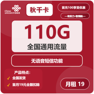 18-60周岁可申请|自主激活|110G全国通用流量|2年19元优惠...