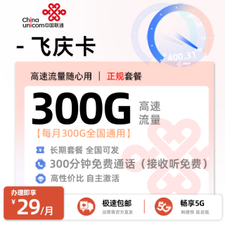 18-60周岁可申请|300G全国通用流量|含300分钟通话|首月免...