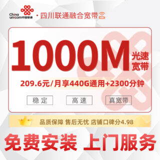 四川-联通融合宽带1000M月费:209.6元/月(原价299元/月...