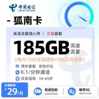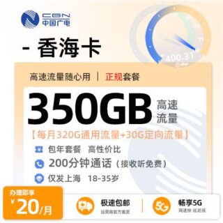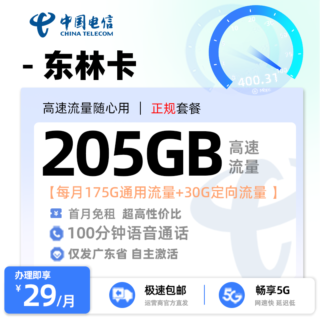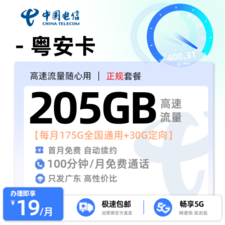 广东电信流量卡19元套餐:电信粤凡卡19元205G流量+100分钟+广东专属!