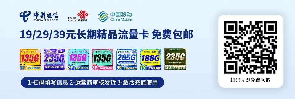 扫下方二维码,免费申请这款电信无合约套餐,电信官方发货,包邮到家↓