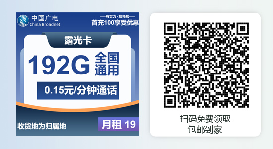 广电大流量卡19元192g全国流量:广电露光卡19元包192G全国通用流量