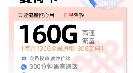 50G 通用 + 30G 定向,定向流量仅限指定 APP(未明确范围,需提前查询),纯通用需求适配性低;