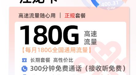150G 通用 + 30G 定向流量,覆盖视频、音乐、社交等多场景使用需求,无需频繁担心流量不足