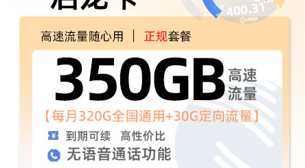 优势:在 4 款卡中,通用流量额度最高,达到 150G / 月,能充分满足用户对大流量的需求;同时包含 300 分钟语音通话,适合有通话需求的用户,无需额外支付通话费用;优惠期长达 24 个月,在 24 个月内可稳定享受 19 元月租的高性价比套餐。