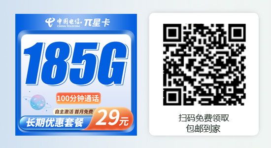 电信长期套餐流量卡,电信π星卡29元185G全国流量+100分钟