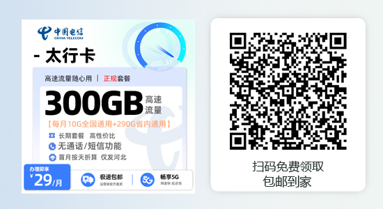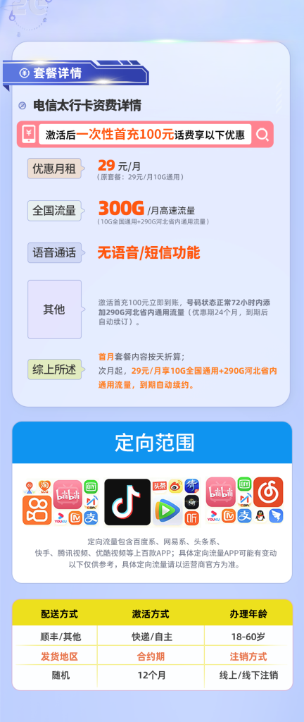 河北电信套餐2025新套餐,电信太行卡29元300G超大流量,仅发河北