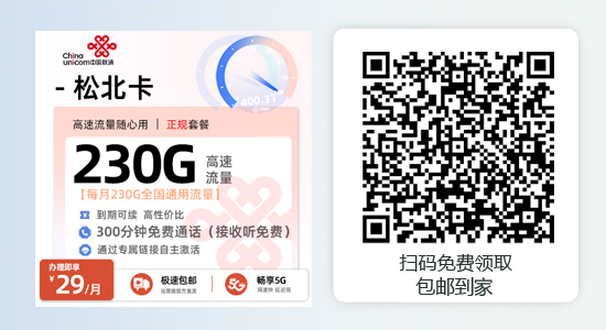 | 联通松北卡 | 29元/月 | 230G | 300分钟 | 24个月 | 12个月 | 流量巨无霸,性价比极致 |