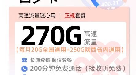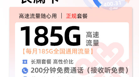 180G通用流量搭配300分钟通话,满足绝大多数用户的日常需求
