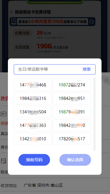 - 填写信息与选号:请提供准确的姓名、身份证号及详细收货地址(避免使用 “驿站”“学校”“酒店” 等公共地址,建议精确到门牌号,如 xx 路 xx 号或 xx 小区 xx 单元 xx 门牌号);下单时可自主挑选心仪号码,确认后提交订单。