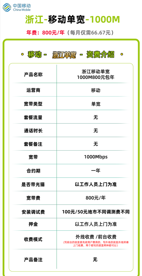 浙江人专属福利!移动1000M宽带,每年仅需800元!