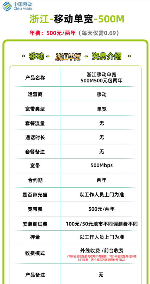 一、一图看懂:浙江移动500M单宽核心详情