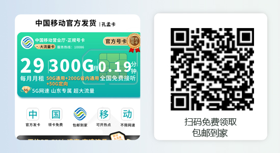 山东移动孔孟卡:29元享300G超大流量,山东用户的省内专属福利