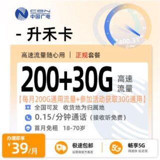 广电流量卡 2026年3月29日 由 浩子流量卡 由 浩子流量卡 · Published 2026年3月29日 广电升禾卡推荐:39元200G全国通用流量,稳定5年套餐! 这张广电升禾卡,39元就能拿下200G全国通用流量,优惠期长达60个...
