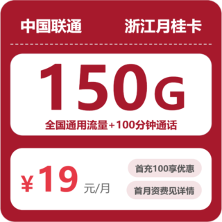 浙江 / 电信流量卡 / 省内卡 2026年3月27日 由 浩子流量卡 由 浩子流量卡 · Published 2026年3月27日 浙江联通月桂卡推荐:19元150G全国通用流量+100分钟通话! 浩子给大家推荐的这张浙江联通月桂卡,专为浙江用户打造,19元就能拿下...