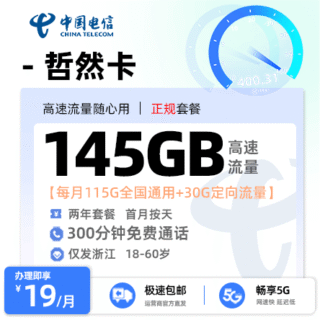 浙江 / 电信流量卡 / 省内卡 2026年3月29日 由 浩子流量卡 由 浩子流量卡 · Published 2026年3月29日 电信哲然卡推荐:19元享145G大流量+300分钟,只发浙江,2年套餐 这张电信哲然卡,第2-12个月每月仅需19元,就能享受115G通用+...