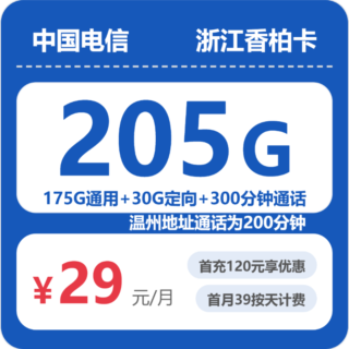 浙江 / 电信流量卡 / 省内卡 2026年3月26日 由 浩子流量卡 由 浩子流量卡 · Published 2026年3月26日 浙江电信香柏卡推荐:29元205G流量+300分钟通话,浙江用户的长期省心之选! 很多浙江用户既想要大流量和通话,又希望优惠期够长不用频繁换卡。今天推...