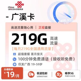 广西 / 省内卡 / 联通流量卡 2026年3月29日 由 浩子流量卡 由 浩子流量卡 · Published 2026年3月29日 联通广溪卡推荐:19元219G通用流量+100分钟通话,到底值不值? 这款联通广溪卡,首充后第2-6个月每月仅需19元,就能享受219G全...