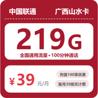广西 / 省内卡 / 联通流量卡 2026年3月27日 由 浩子流量卡 由 浩子流量卡 · Published 2026年3月27日 广西联通山水卡推荐:39元219G全国通用流量+100分钟通话,广西用户的流量巨无霸! 这张广西山水卡,专为广西用户打造,39元就能拿下219G全国通用流量...