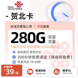 河北 / 省内卡 / 联通流量卡 2026年3月30日 由 浩子流量卡 由 浩子流量卡 · Published 2026年3月30日 联通贺北卡推荐:39元享280G大流量+200分钟通话,河北用户专属长期套餐 这张联通贺北卡,每月仅需39元,就能享受280G省内通用流量+200...