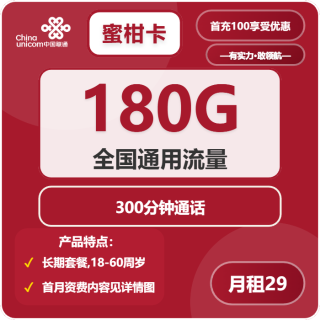 18-60周岁可申请|自主激活|长期套餐|全通用流量卡 联通蜜柑卡申...